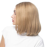 La parte superior de la base consta de una inserción de monofilamento, es decir, una malla delgada y transpirable. El peinado luce natural porque las transparencias entre los mechones dan la impresión de que el cabello crece desde el cuero cabelludo real.